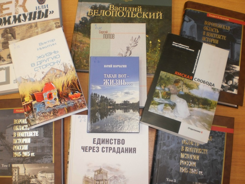 Библиотека предлагает вашему вниманию книжные новинки воронежских авторов и издательств. Эти книги по краеведению, истории Воронежской области, знаменитых воронежцах поступили в фонд библиотеки из областной универсальной научной библиотеки им. И.С. Никитина, рассчитаны на широкий круг читателей.