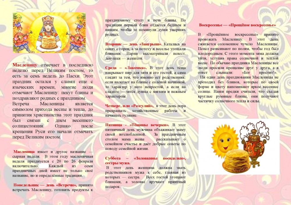 Масленица означает, проводы зимы и встречу весны - предвестницы тепла и обновления природы. В 2023 году Масленица выпадает на 20–26 февраля.