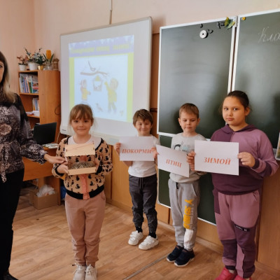 Сотрудники центральной детской библиотеки совместно с учителями 1 «в» и 1 «б» классов приняли участие в областной экологической акции «Покорми птиц зимой». Библиотекарь рассказала о птицах, зимующих в наших краях. Зимняя подкормка птиц – довольно старая традиция. Первыми инициаторами ее были сами птицы. Они быстро усвоили, что возле человеческих жилищ можно кое-чем разжиться. Зимой даже типичные лесные птицы начинают тянуться к человеческому жилищу. Голод заставляет на время забыть о естественной осторожности. Но просто сделать кормушку для птиц недостаточно. «А кто знает, из чего может состоять птичье меню? Что можно и чего нельзя давать птицам на обед?» - дети с удовольствием отвечали на эти и другие вопросы. Ребята узнали, какие народные приметы связаны с птицами, отгадывали загадки, продолжали пословицы и поговорки. В заключении ребята прочитали наизусть стихотворение «Покормите птиц зимой».