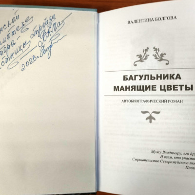 «Багульника манящие цветы», - так называется автобиографический роман нашей землячки Валентины Петровны Болговой, изданный в конце 2023 года в количестве 20 экземпляров на собственные средства. 1 экземпляр книги подарен Панинской межпоселенческой центральной библиотеке.