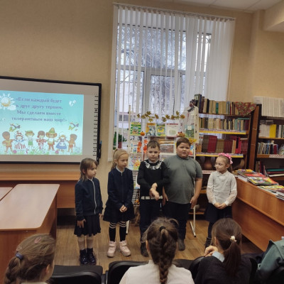 15 ноября для учеников 2 «а» класса (классный руководитель Сорокина О.В.) сотрудники детской библиотеки провели библиотечный урок «Путешествие в город Толерантность» под девизом «Мы разные, но мы вместе!» На мероприятии ребята познакомились с историей возникновения праздника и понятиями: толерантность, сочувствие, сострадание, милосердие, доброта. Обсудили, то, что люди все разные, у каждого есть свои особенности, не говоря уже о внутреннем мире каждого человека. Ребята определили, какими качествами должна обладать толерантная личность, обсудили принципы толерантного поведения.