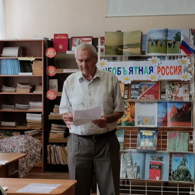 Ведущая библиограф МЦБ Светлана Горбань кратко рассказала историю возникновения этого праздника, провела интеллектуальную викторину: «Угадай авторов стихотворений о Родине». В ходе мероприятия звучали стихи и песни поэтов-земляков о России, о родном крае; о героях-соотечественниках СВО, с честью и доблестью сражающихся за своё Отечество, действия которых основаны на глубокой любви к Родине и искреннее желание защищать её от любых угроз.