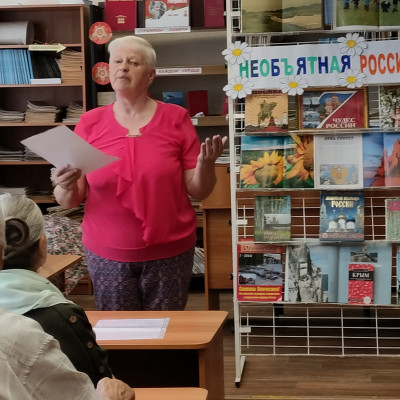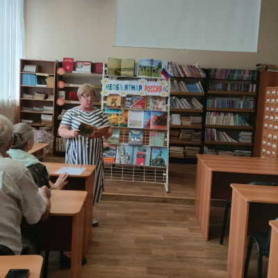 10 июня 2025 г., в преддверии Дня России, в читальном зале межпоселенческой центральной библиотеки состоялся час поэзии: «С Россией в сердце». Его участниками стали члены клуба любителей поэзии «Надежда» - поэты и любители поэзии, работники библиотеки.