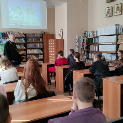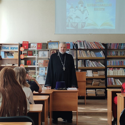 Отец Игорь поздравил присутствующих с Днём православной книги, передал в дар библиотеке православную литературу; интересно и доступно рассказал ребятам о значении книги в духовной и мирской жизни; о том, как важна вера в наше непростое время. Учащиеся узнали, что православная литература – не только богослужебная литература, жития святых, труды святых отцов, а также православная тематика присутствует в произведениях многих русских и современных писателей. Очень важно, что православная литература – это добрая литература, она воспитывает добрые чувства и побуждает к добрым поступкам. В заключение был сделан вывод о том, что православная книга – великий дар человеку от Бога. От того, какие книги будут читать дети, зависит их будущее.