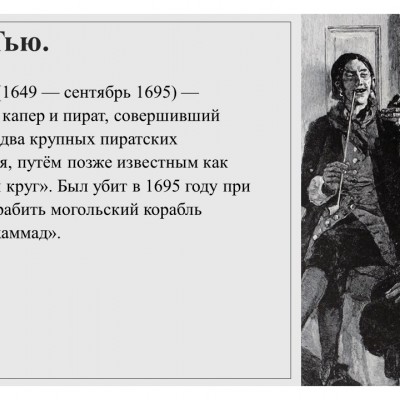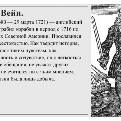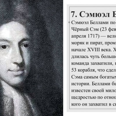 Думаю, что многие любят смотреть приключенческие фильмы о пиратах. Некоторые персонажи таких фильмов взяты из реальной жизни. Вот немного информации о самых знаменитых пиратах в истории.