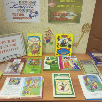С целью формирования у юных читателей антикоррупционного мировоззрения, воспитания честности и порядочности, Панинской детской библиотеке был проведен информационный обзор у книжно – иллюстративной выставки “Коррупция в детской литературе». С помощью сказок были раскрыты понятия «коррупция», «взятка», «мошенничество», проведен анализ поступков литературных произведений и героев народных сказок, которые несут за собой коррупционные действия.