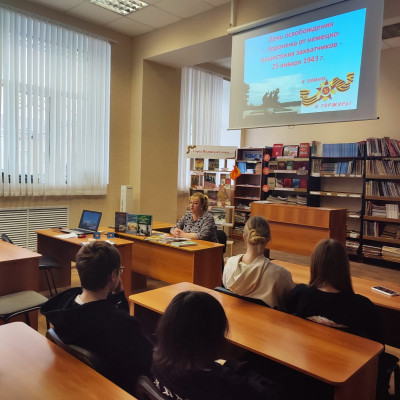 25 января – День освобождения Воронежа от немецко-фашистских захватчиков. Память о том страшном времени, о героизме и стойкости освободителей Воронежа хранят в своих сердцах все поколения наших земляков. И сегодня, спустя 82 года, мы вновь обращаемся к истории, к событиям далеких военных лет. 23 января для учащихся Панинской школы в Панинской межпоселенческой центральной библиотеке прошёл исторический экскурс «И выстояли и победили!». Сотрудниками библиотеки были подготовлены видеопрезентации «Герои Воронежа» и «Памятники города». Из них ребята узнали о героическом прошлом нашего города, о героях защитниках, чьими именами названы улицы Воронежа, о памятниках и мемориальных комплексах, в которых увековечен подвиг русского солдата. А фильм Александра Никонова «Освобождение Воронежа» рассказал об улицах, площадях, известных архитектурных сооружениях родного города, которые во время боев были разрушены на 90%, а затем за короткое время восстановлены. К мероприятию была оформлена тематическая книжная выставка «Город подвига и славы», на которой представлены книги, посвященные обороне и освобождению города Воронежа. Под звуки метронома присутствующие почтили память погибших минутой молчания.