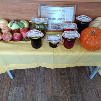 Выставку дополняла экспозиция «Заготовки на зиму. Вкусные рецепты», на которой радовали взгляд краснобокие яблоки, оранжевые и жёлтые тыквы, баночки с вареньем, огурцами, борщевой приправой и др., с ярким оформлением рецептов приготовления.