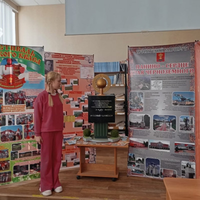 Стефания Сероухова прочитала слова В.В. Докучаева о значении чернозема в жизни человечества. Единственный в мире памятник, посвященный плодородию почвы, установлен в Панино. Ребята узнали о достопримечательностях Панино и Панинского района. Их вниманию были представлены книжно – иллюстративная выставка «Сердце края Черноземного» и выставка сувенирной продукции для туристов.