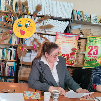 Ведущие Елена Бахтина и Светлана Горбань начали своё выступление с поздравления всех присутствующих мужчин, проходивших службу в рядах Советской Армии, отметив, что это день настоящих мужчин, готовых встать на защиту родных людей и рубежей Родины. Для них были подготовлены: ретро - презентация «Есть такая профессия – Родину защищать», авторские стихи – поздравления, тематическая выставка «Защитникам Отечества – Слава!».