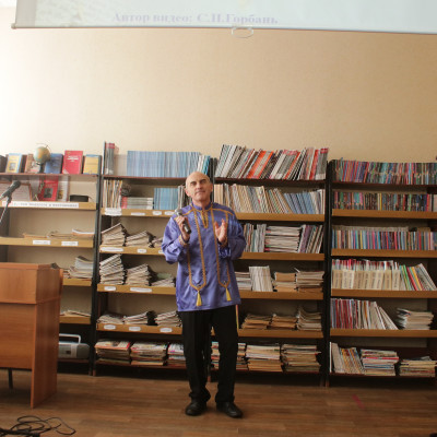 Ведущая встречи библиограф МБО Светлана Горбань с помощью видео - презентации и тематической выставки раскрыла перед присутствующими жизненный и творческий путь юбиляра.