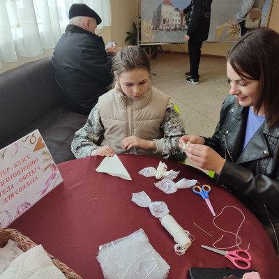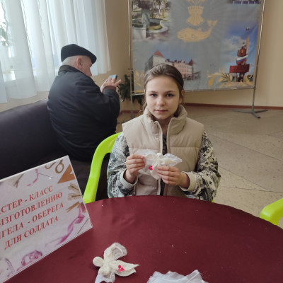 5 апреля сотрудники межпоселенческой центральной и центральной детской библиотек приняли участие в благотворительном концерте "Поддержим наших" в поддержку военнослужащих, выполняющих боевые задачи в зоне проведения специальной военной операции, где провели мастер - класс по изготовлению ангела - оберега для солдата. Все участники мероприятия своими руками и с большой любовью создавали талисманы-обереги для солдат – участников СВО. Такой ангел-хранитель, сделанный от чистого сердца, заряженный на удачу и только на победу, будет оберегать защитников нашей Родины.