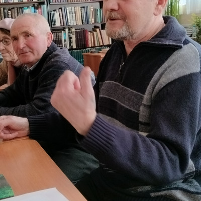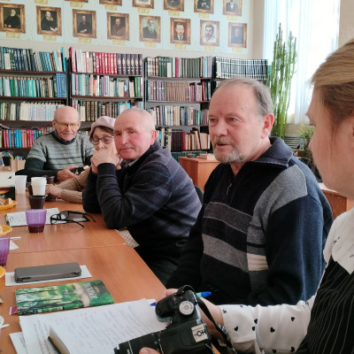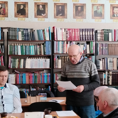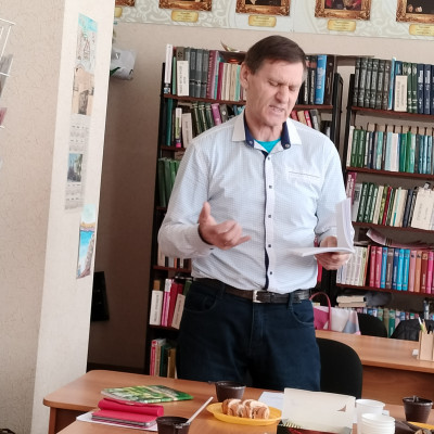 А. Рыбин рассказал о своём творческом пути и исполнил несколько песен, аккомпанируя на баяне. Аплодисменты, слова благодарности и признательности прозвучали в его адрес от слушателей.