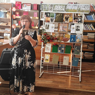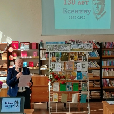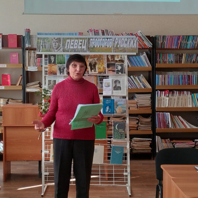 К мероприятию была подготовлена книжно-иллюстративная выставка «Певец просторов русских», на которой были представлены книги, журнальные статьи, иллюстрации к произведениям.