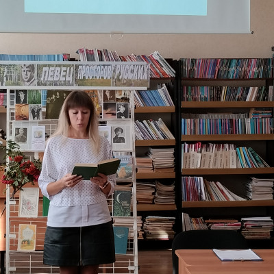 Ведущие и организаторы мероприятия библиограф Светлана Горбань и библиотекарь Елена Бахтина рассказали о детстве поэта, жизненном и творческом пути, о влиянии религии на его творчество.