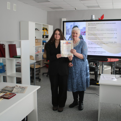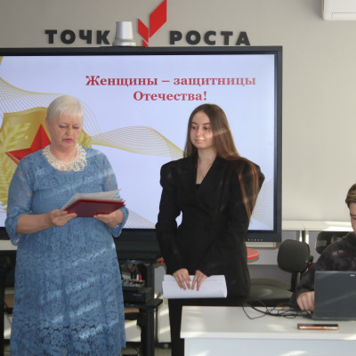 Этой теме и был посвящён патриотический час «Женщины – защитницы Отечества», который организовала библиотекарь отдела обслуживания Панинской межпоселенческой библиотеки Грицакова Г.Б. для учащихся 9 «Б» класса Панинской СОШ (кл. рук. Минченко Г.С.) на базе центра «Точка роста» в преддверии этого праздника. Гостем мероприятия стала выпускница Панинской школы, а ныне студентка факультета журналистики ВГУ по специальности «Военная журналистика» Кучина Виктория.