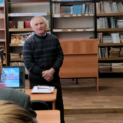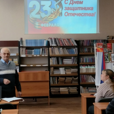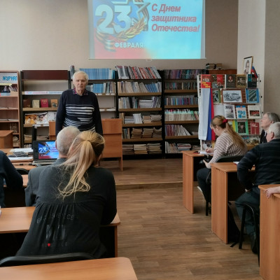 Открыла мероприятие председатель клуба И. Казимирова поздравлением всех присутствующих мужчин с Днём защитника Отечества. Библиограф С.Горбань рассказала историю этого дня, поведала о доблести русского народа в суровые годы войны, отметила, что 2024 год – юбилейный для многих памятных дат: 80 лет освобождения от блокады г. Ленинград, 35 лет вывода советских войск из Афганистана, 80-летие полного освобождения Крыма, Минска, год памяти о погибших в Первой мировой войне (110 лет) и др.