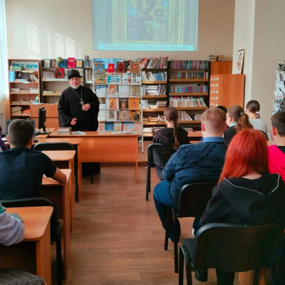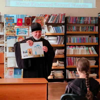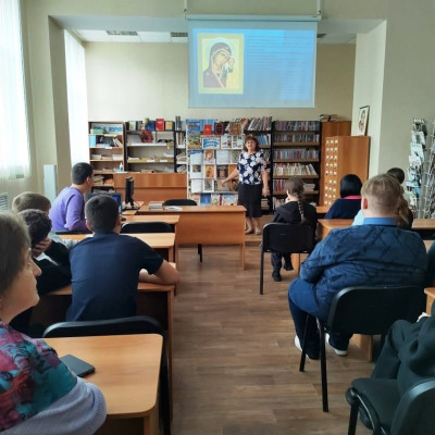 14 ноября 2023 года в читальном зале Панинской межпоселенческой центральной библиотеки состоялась православная беседа – обзор: «Общерусская святыня – икона Казанской Божией Матери». Беседу провели для учащихся МБОУ Панинской СОШ: настоятель храма протоиерей Николай, библиограф МБО С. И. Горбань, учащийся 9 класса В.Уваров.