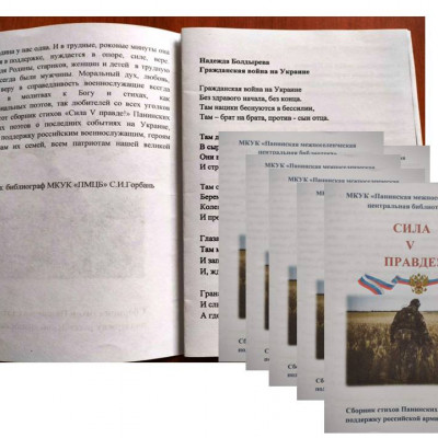 В Панинской межпоселенческой библиотеке прошла презентация брошюры стихов местных поэтов о СВО с патриотическим названием «Сила V правде!», которая была подготовлена методико-библиографическим отделом.