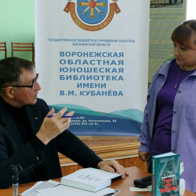 26 сентября 2023 года сотрудники Панинской межпоселенческой библиотеки приняли участие во встрече с воронежским писателем Михаилом Фёдоровым, адвокатом, членом союза писателей России, лауреатом премии Валентина Пикуля (2023), автором серии «Замечательные люди Воронежского края», которая была организована Воронежской областной юношеской библиотекой имени В.М. Кубанёва в рамках Литературного молодёжного центра в лекционном зале ВОУНБ им.И.С.Никитина.