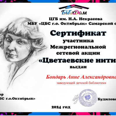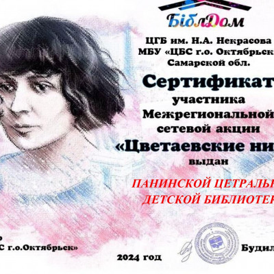 Панинская центральная детская библиотека приняла участие в Межрегиональной сетевой акции «Цветаевские нити», приуроченной к 132-летию со дня рождения Марины Цветаевой.