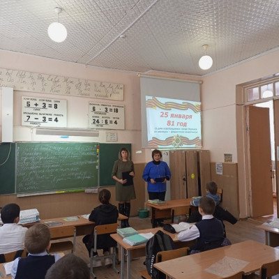 25 января для учеников 4 «А» класса был проведен урок патриотического воспитания «Герои Воронежа в годы Великой Отечественной войны». Сотрудники библиотеки рассказали о событиях, посвященных Великой Отечественной войне, о подвигах земляков, участвующих в освобождении Воронежа, посмотрели фотографии Воронежа, сделанные в военное время. Дети увидели, каким разрушенным был город во время войны. Из документального фильма ученики узнали о ходе военных действий на территории Воронежа.