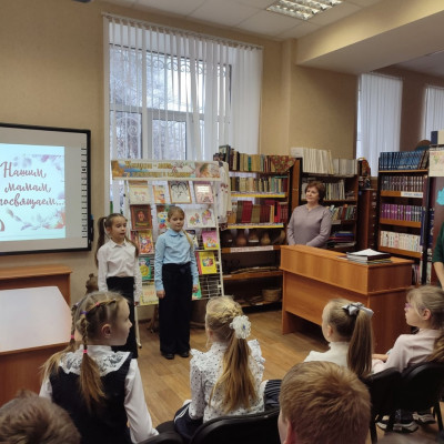 Среди многочисленных праздников в нашей стране День матери занимает особое место. Мама — самый важный, дорогой и близкий человек для каждого взрослого и ребенка. Она та, кто сопровождает нас с самого рождения и продолжает беспокоиться о нас на протяжении всей жизни. На традиционных мероприятиях, посвященных этому дню, библиотеки наполняются светом, любовью и добротой. Для учащихся 3 «А» класса (классный руководитель Щеголева Л.Н.) сотрудники детской библиотеки подготовили и провели урок – поздравление «Говорите мамам нежные слова». Участников мероприятия познакомили с историей праздника – днем Матери. Рассказали о том, что о матерях написано много произведений, сложено много песен, стихов. Ребята заранее подготовили стихотворения и разучили песни о маме, а также с удовольствием разгадывали шуточные загадки о мамах, детях, семье, вспоминали пословицы и поговорки, играли в игру «Мамочки», «Ворчалки» и др. К мероприятию была оформлена книжно - иллюстративная выставка «Самый дорогой человек на земле»
