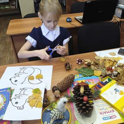 Самое важное - это захватить с собой хорошее настроение. Так и поступили наши юные читатели. Они с удовольствием приняли участие в уроке творчества "Краски осени". Ребята отгадывали загадки,ответили на вопросы викторины "Осенний калейдоскоп", вспомнили приметы и пословицы об осени, поговорили о любимом времени года и, конечно же, сделали поделку из природных материалов своими руками...
