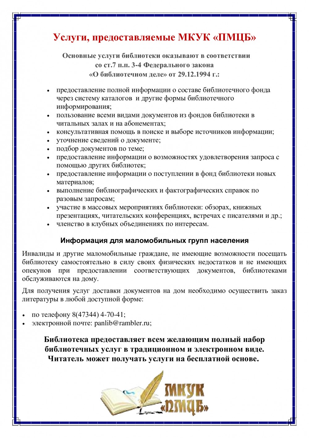 • Положение о библиотеках-филиалах МКУК "ПМЦБ"
